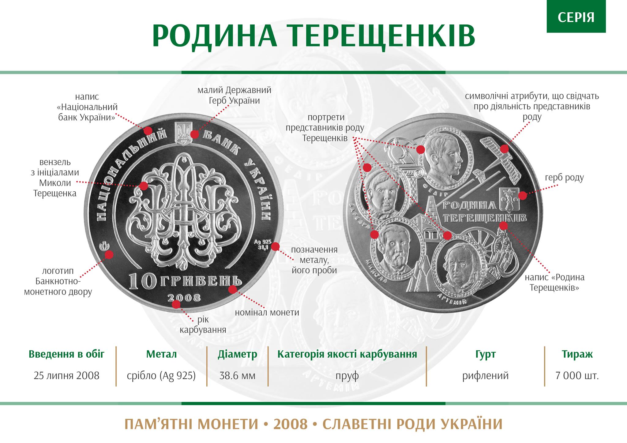 Родина Терещенків 7 925 31,1 38,61 рифлена пруф Серія В