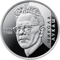 На реверсі монети зображено портрет Миколи Лукаша, ліворуч від якого на дзеркальному тлі зазначено роки життя у два рядки 1919/1988; праворуч вертикальні написи: МИКОЛА/ЛУКАШ.