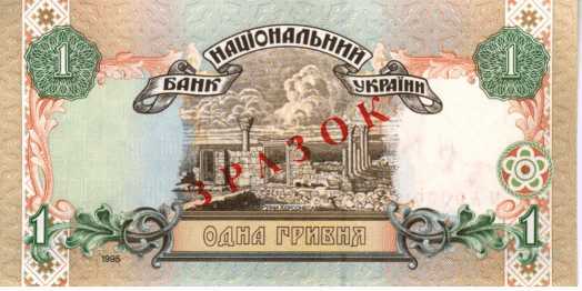 Áàíêíîòà íîì³íàëîì 1 ãðèâíÿ 1995 ðîêó âèãîòîâëåííÿ. ϳäïèñ "Þùåíêî", "Çðàçîê"